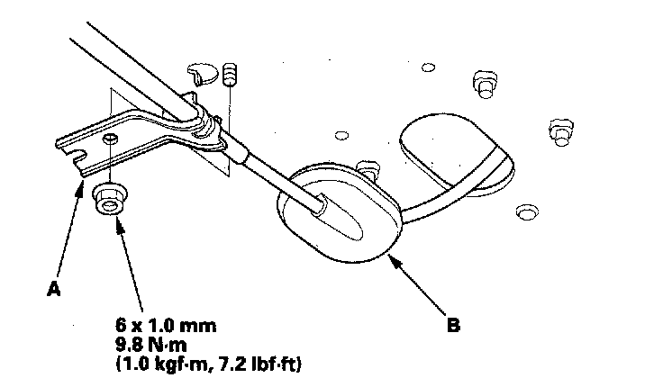 8. Remove the bolts securing shift cable holder (A), then remove the shift cable cover (B).
