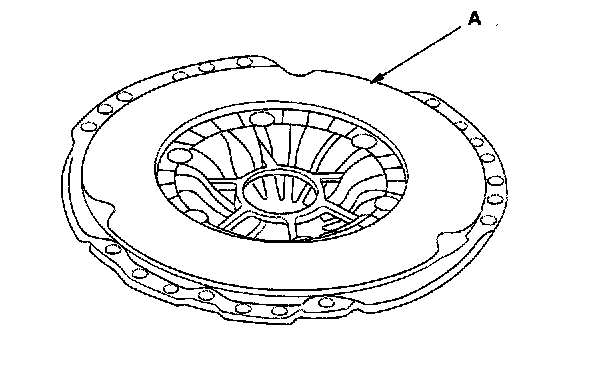6. Inspect the fingers of the diaphragm spring (A) for wear at the release bearing contact area.