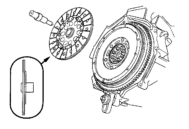 1. Temporarily install the clutch disc onto the splices of the transmission mainshaft. Make sure the clutch disc slides freely on the mainshaft.