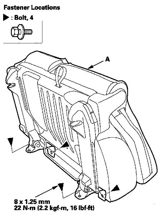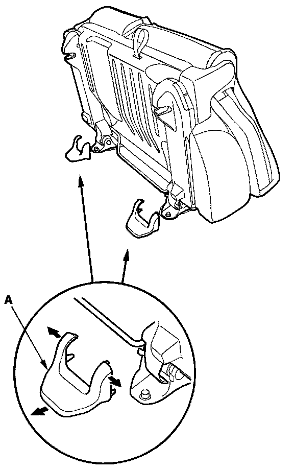 5. While holding the rear seat (A) up, remove the mounting bolts.