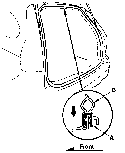 Tailgate Weatherstrip Replacement1. Remove the tailgate weatherstrip (A) by pulling out on it.