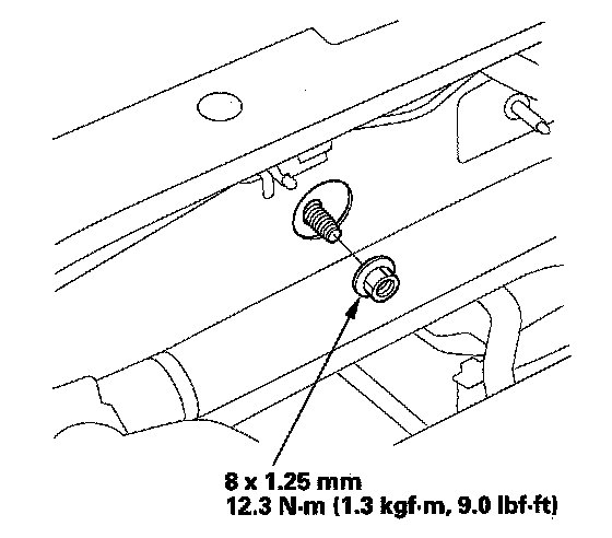 6. Remove the mounting nut from the heater unit. Take care not to damage or bend the fuel lines or brake lines, etc.