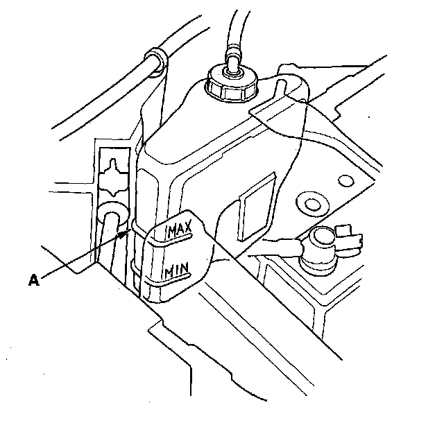 6. Fill the coolant reservoir to the MAX mark (A) with Honda Long Life Antifreeze/Coolant Type 2 (P/N OL999-9001).