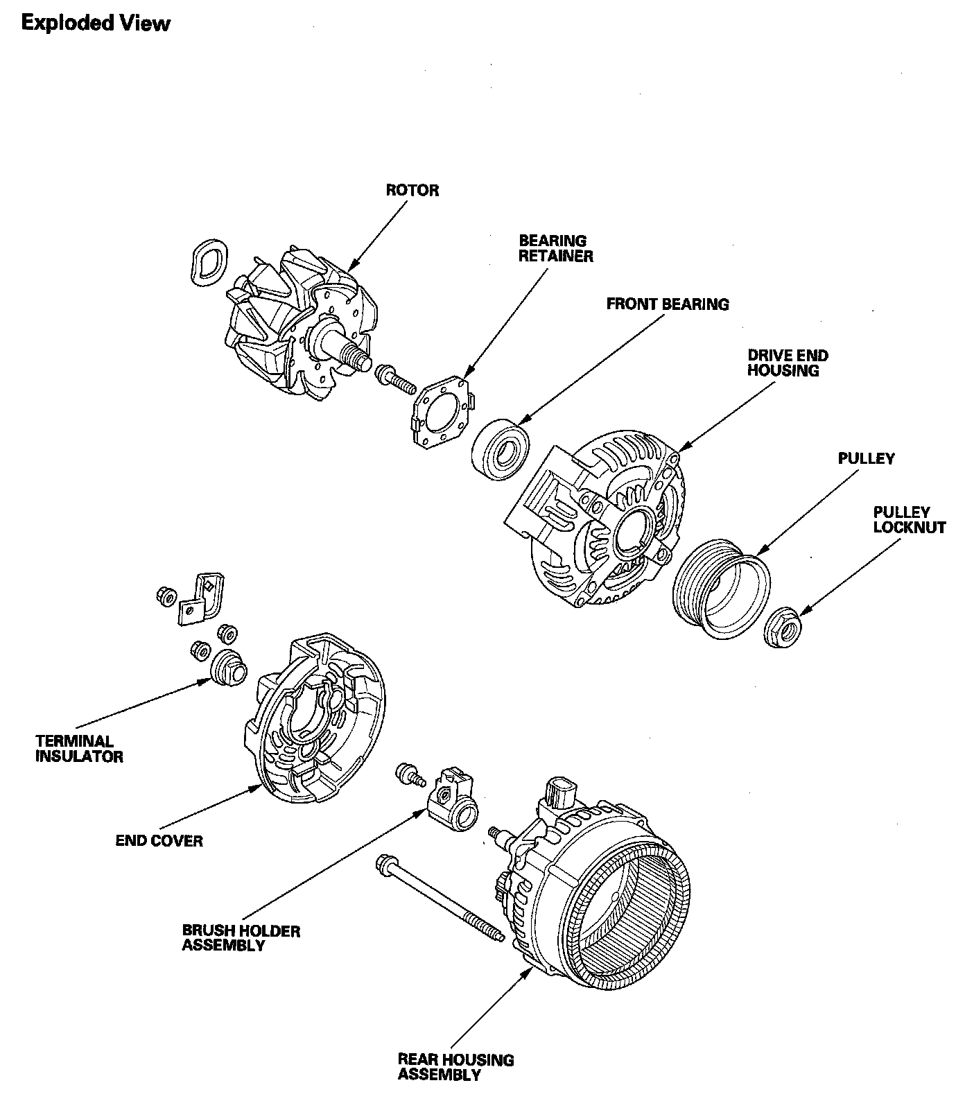 22. After assembling the alternator, turn the pulley by hand to make sure the rotor turns smoothly and without noise.
