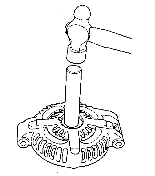 12. With a hammer, driver, and attachment, install a new front bearing in the drive end housing.