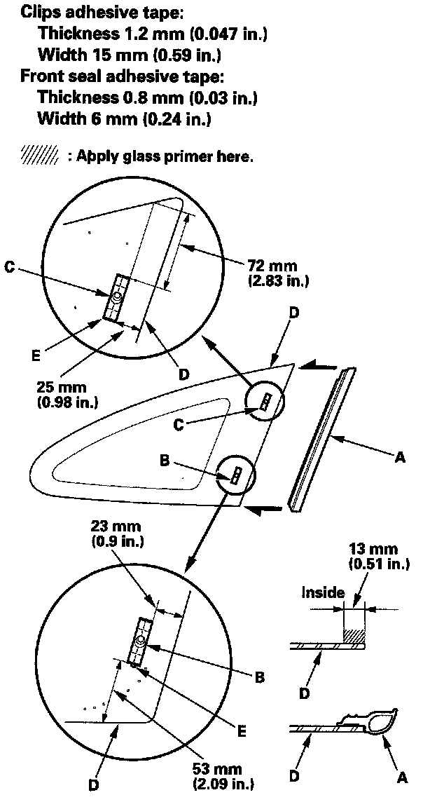 - Never touch the primed surfaces with your hands. If you do, the adhesive may not bond to the quarter glass properly, causing a leak after the quarter glass is installed.