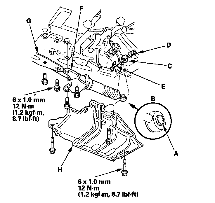 11. Remove the shift cable grommet, and pull out the shift cable (B).