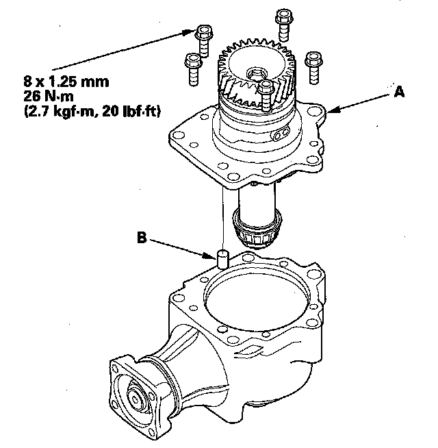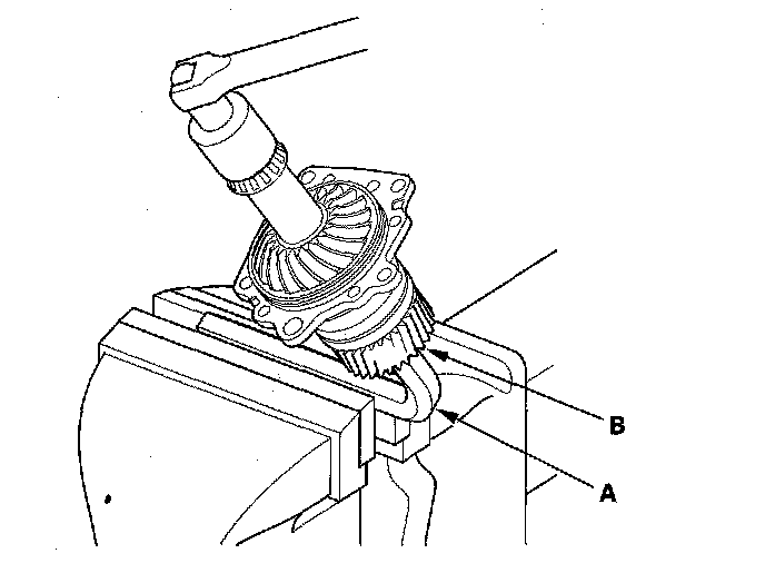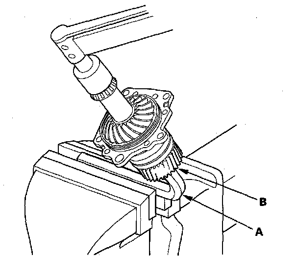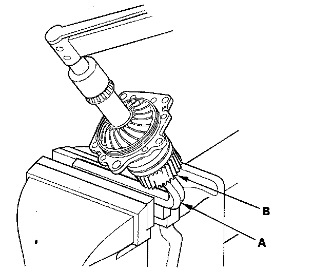 22. Remove the transfer holder (A) from the transfer housing (B) after adjusting the transfer gear backlash or transfer gear tooth contact.