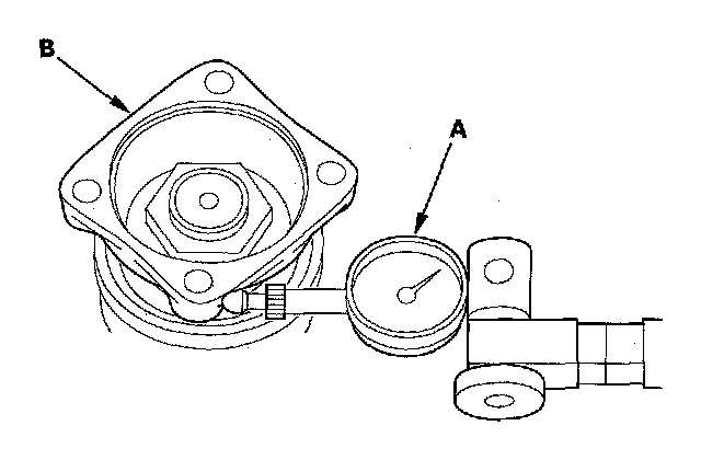 41. If the measurement is out of standard, put a 14 mm hex wrench (A) in the transfer shaft (B), then secure the hex wrench in a bench vise.