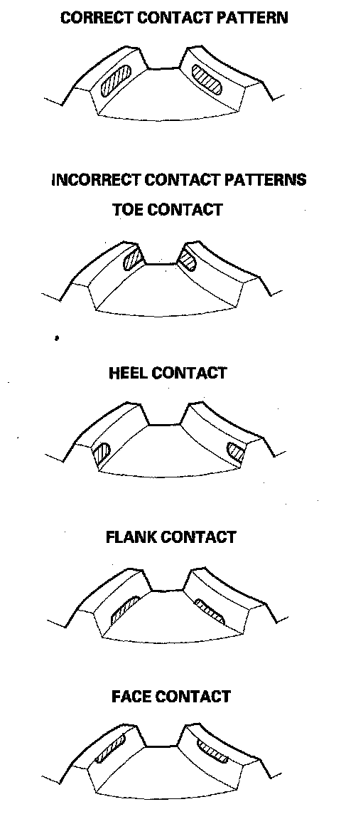 Use a thinner thrust shim to move the transfer drive gear toward the transfer output shaft. Flank contact must be adjusted within the limits of the transfer gear backlash. If the backlash exceeds the limits, adjust as described under Heel Contact.
