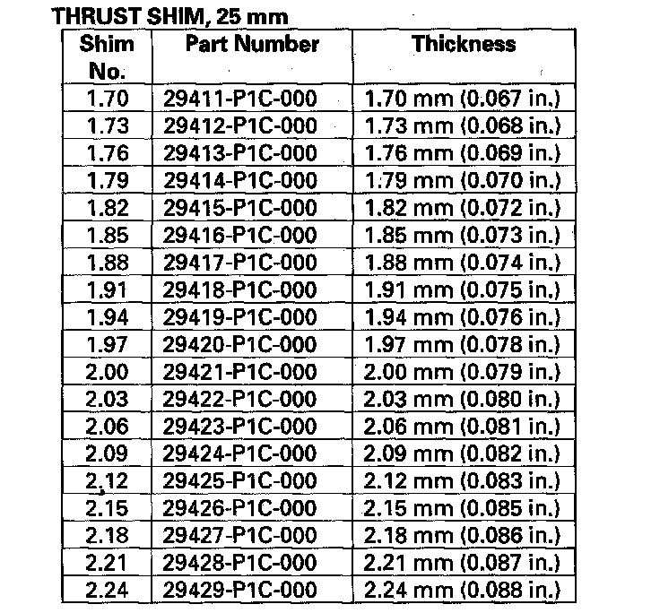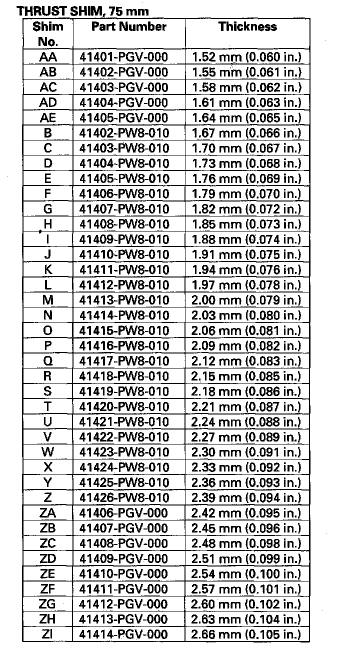 - Increase the thickness of the 75 mm thrust shim by amount you reduced the thickness of the 25 mm thrust shim.