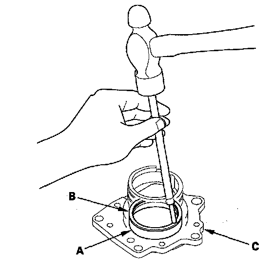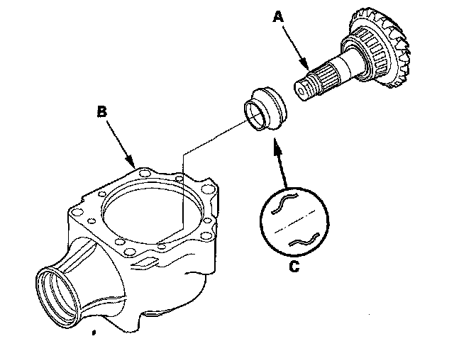 27. Install the new transfer spacer (C) on the transfer output shaft in the direction shown, and install them in the transfer housing.