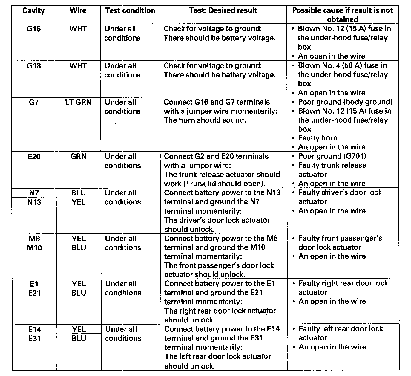 - If all the input tests prove OK, the MICU must be faulty; replace the under-dash fuse/relay box.