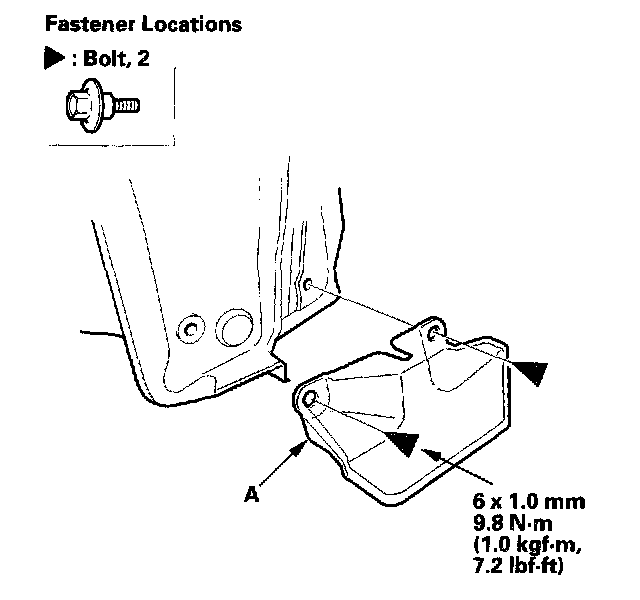 Remove the bolts, then remove the rear strake (A) from the body.