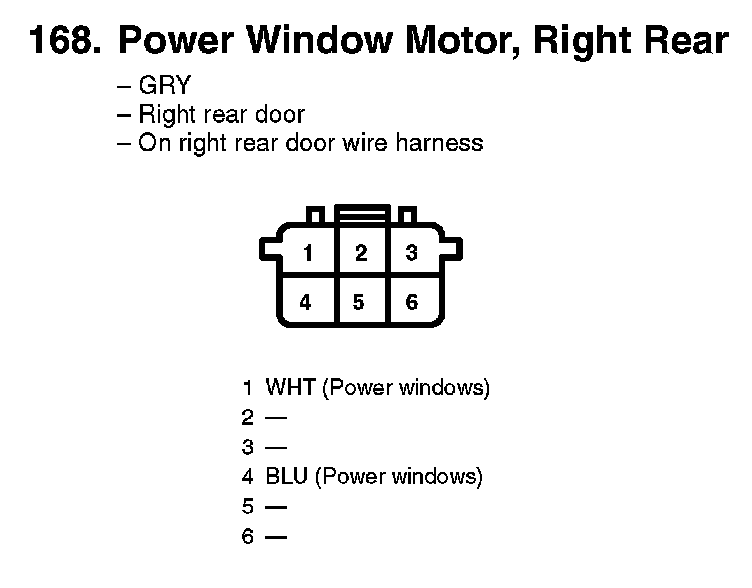 168. Power Window Motor, Right Rear:
