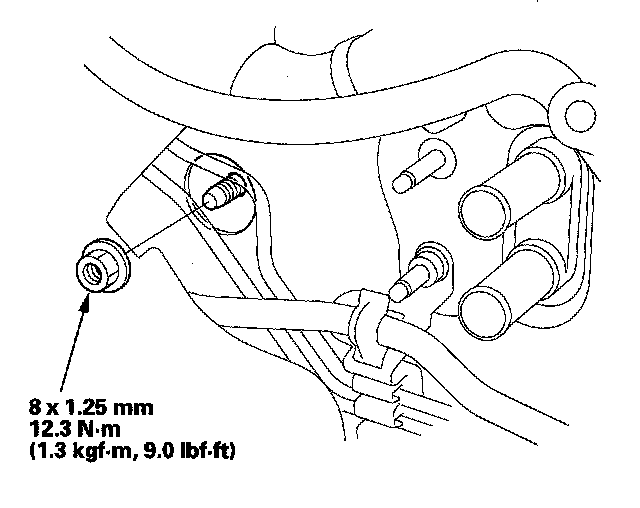 8. Remove the mounting nut from the heater unit. Take care not to damage or bend the fuel lines or brake lines, etc.