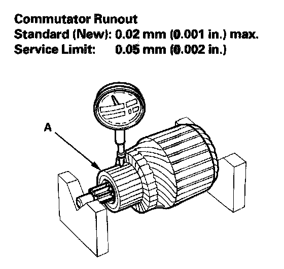 - If the commutator runout is not within the service limit, replace the armature.
