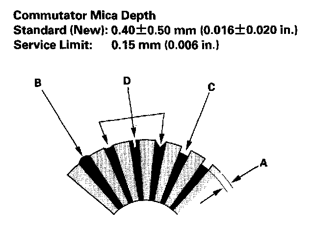 - If the commutator runout is within the service limit, check the commutator for carbon dust or brass chips between the segments.
