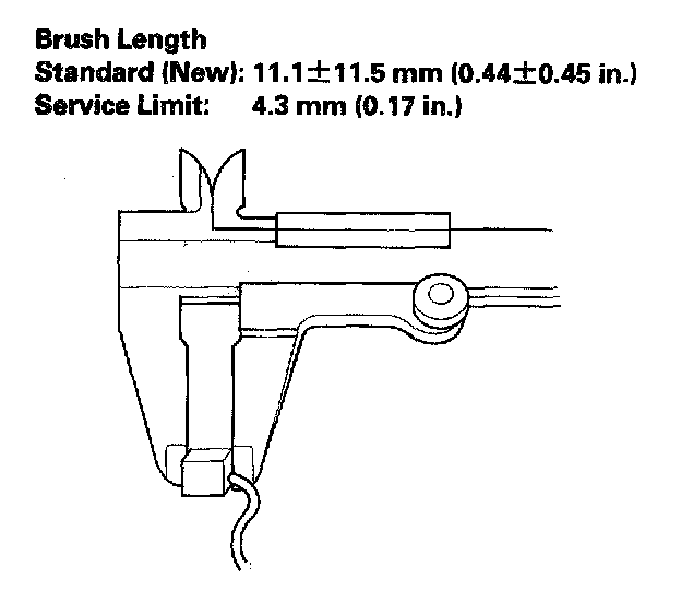 11. Measure the brush length. If it is not within the service limit, replace the brush holder assembly.