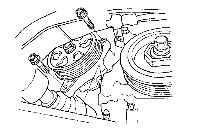 29. Remove the power steering (P/S) pump without disconnecting the P/S hoses from the pump.