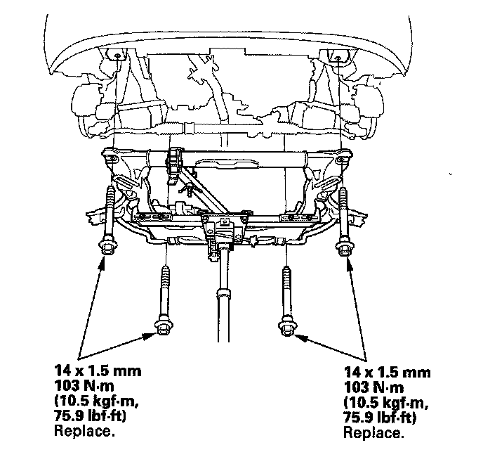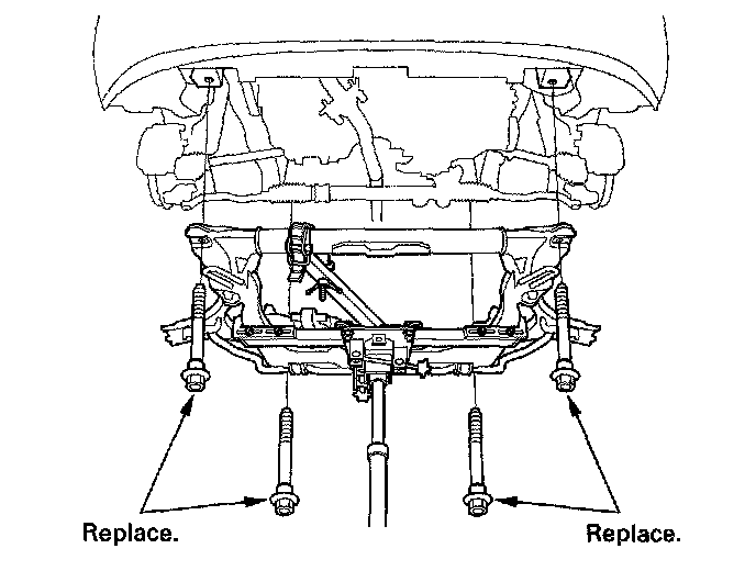 12. Loosely install the new subframe mounting bolts.