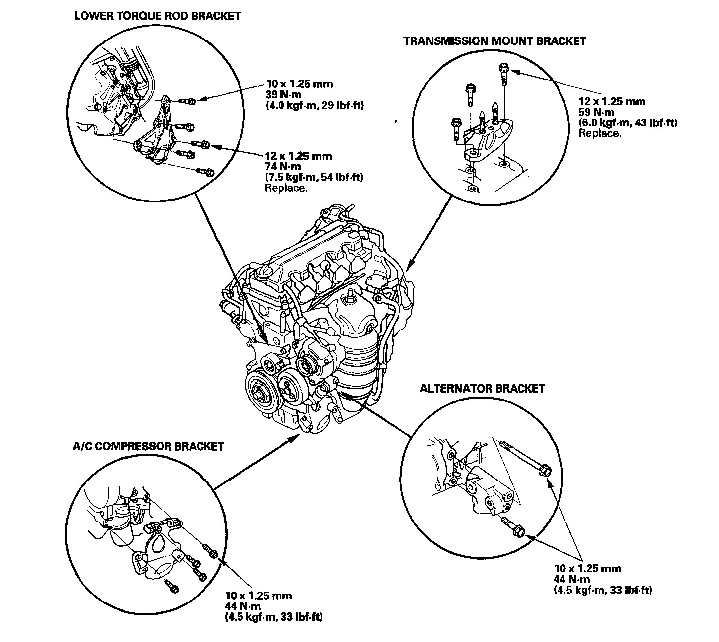 NOTE: Reinstall the mounting bolts/support nuts in the sequence given in the following steps. Failure to follow this sequence may cause excessive noise and vibration, and reduce engine mount life.
