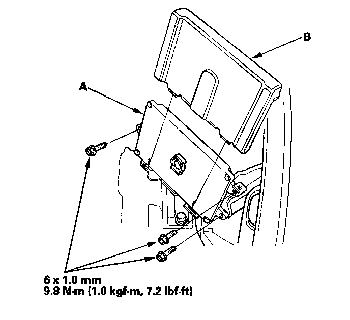 40. Install the PCM (A), then install the PCM cover (B).