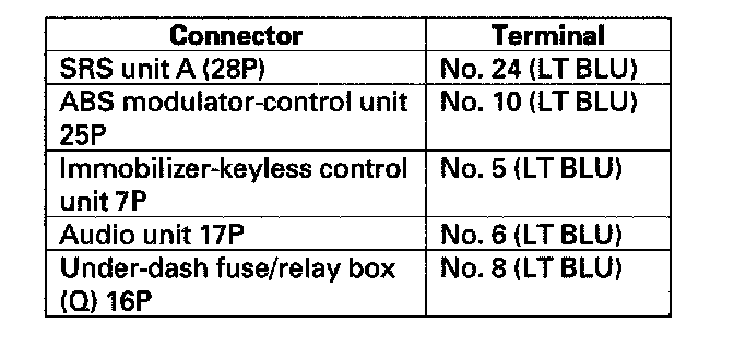 6. Turn the ignition switch ON (II), and watch the SRS indicator.