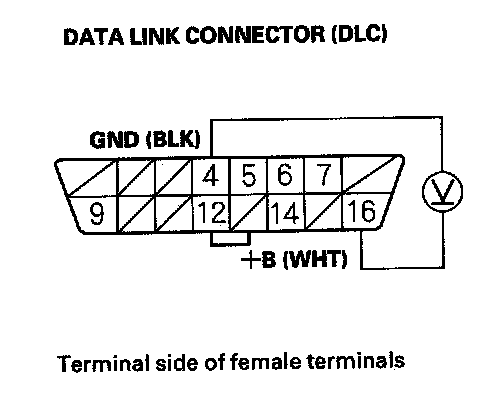 24. Measure voltage between DLC terminals No. 4 and No. 16.