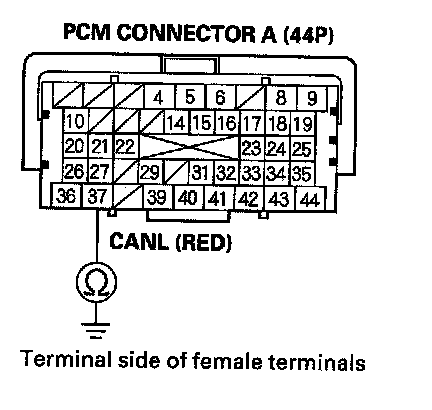 32. Check for continuity between PCM connector terminal A37 and body ground.