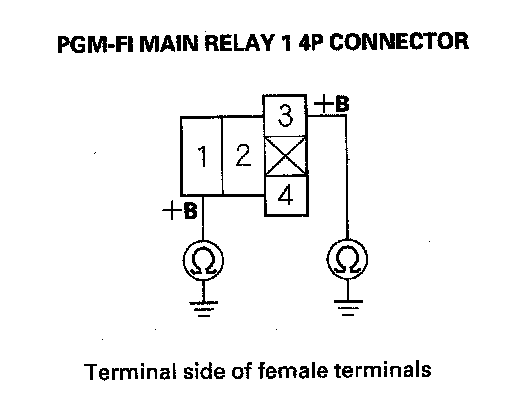 39. Check for continuity between body ground and PGM-FI main relay 1 4P connector terminals No. 1 and No. 3 individually.