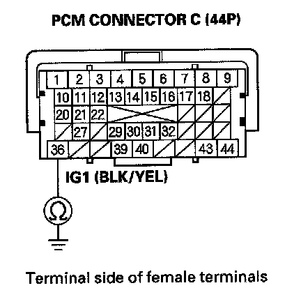 47. Check for continuity between PCM connector terminal C36 and body ground.