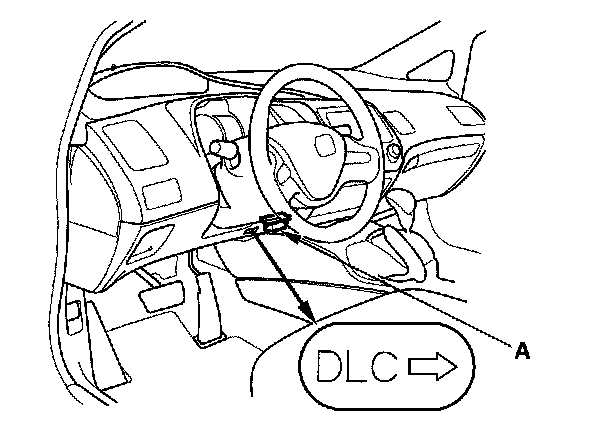 2. Connect the HDS to the data link connector (DLC) (A) located under the driver's side of the dashboard.