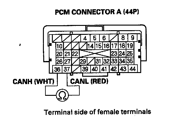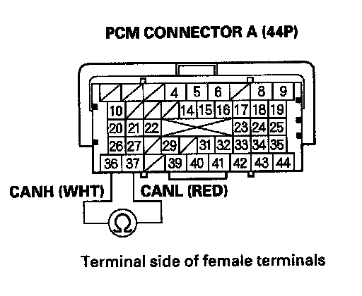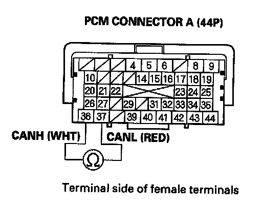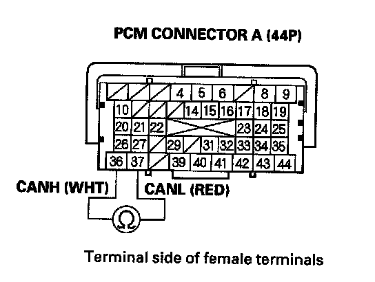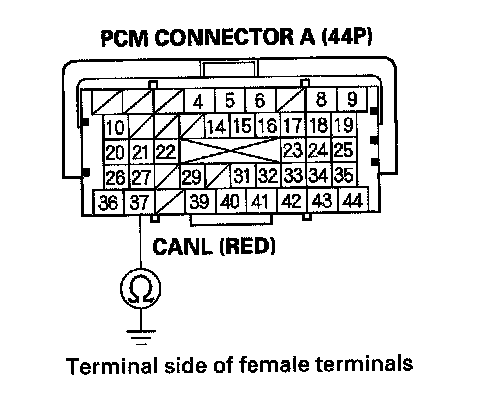 4. Measure resistance between PCM connector terminals A36 and A37.