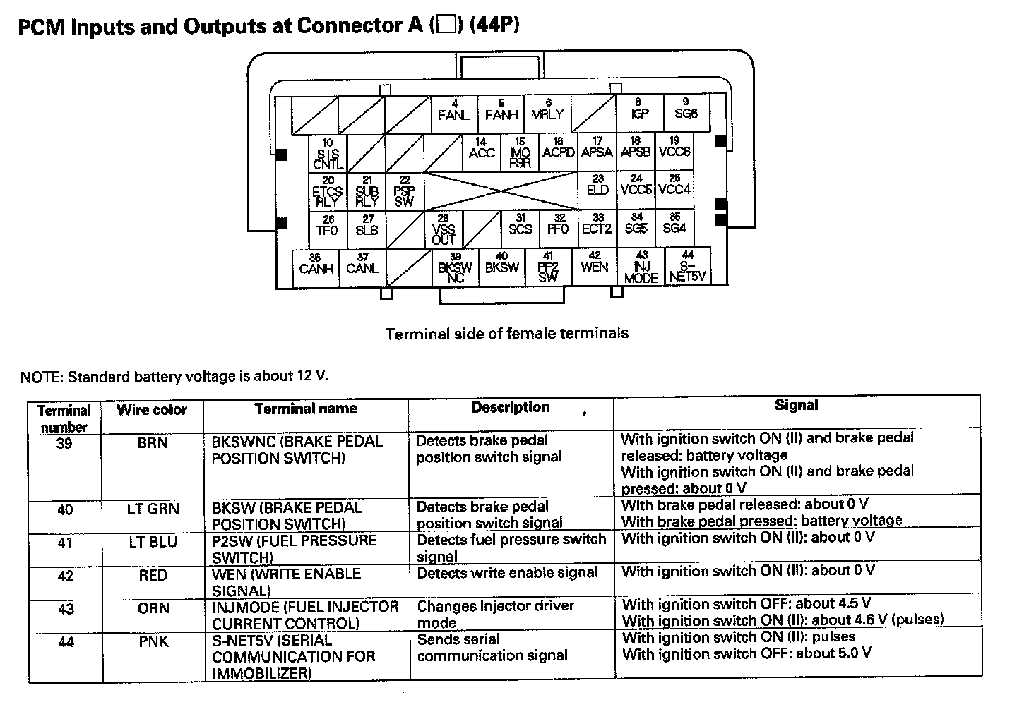 PCM Inputs And Outputs At Connector A (44P) Part 3: