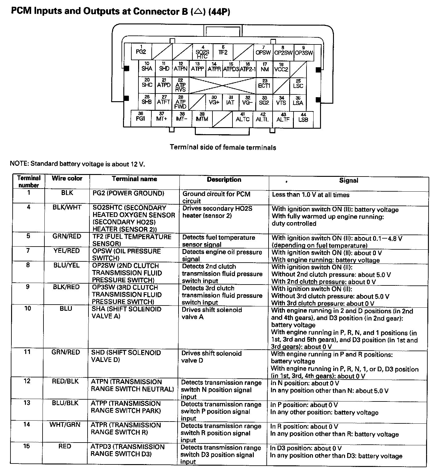 PCM Inputs And Outputs At Connector B (44P) Part 3: