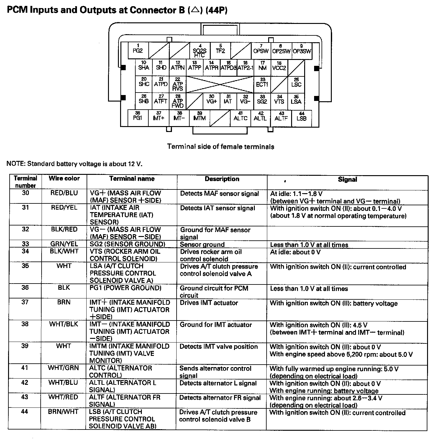 PCM Inputs And Outputs At Connector B (44P) Part 1: