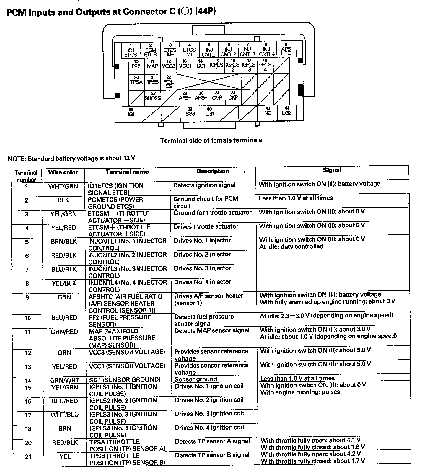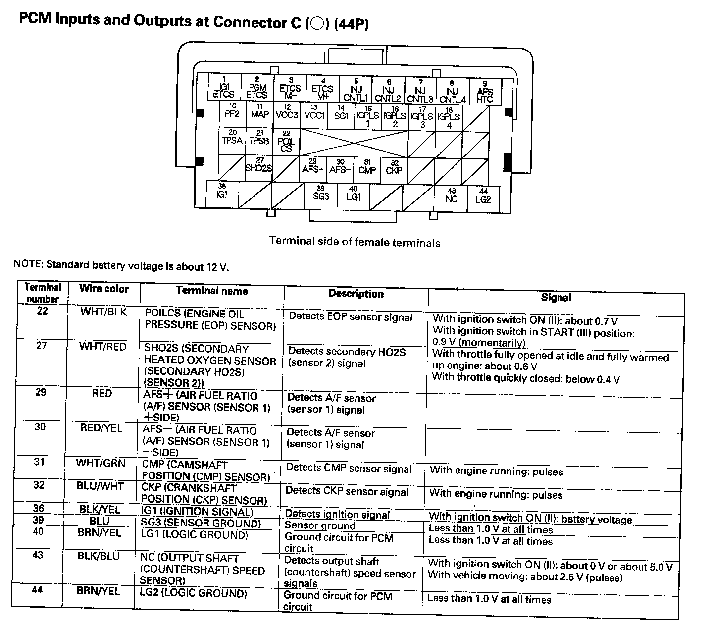 PCM Inputs And Outputs At Connector C (44P) Part 1: