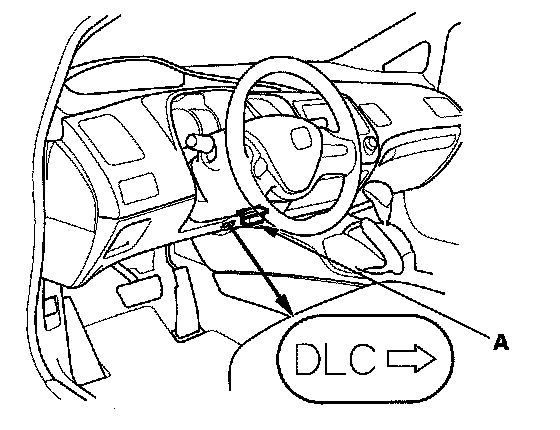 2. If the MIL stays on or the low fuel indicator blinks, connect the HDS to the data link connector (DLC) (A) located under the driver's side of the dashboard.
