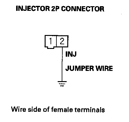 5. Connect each injector 2P connector terminal No. 2 to body ground with a jumper wire.