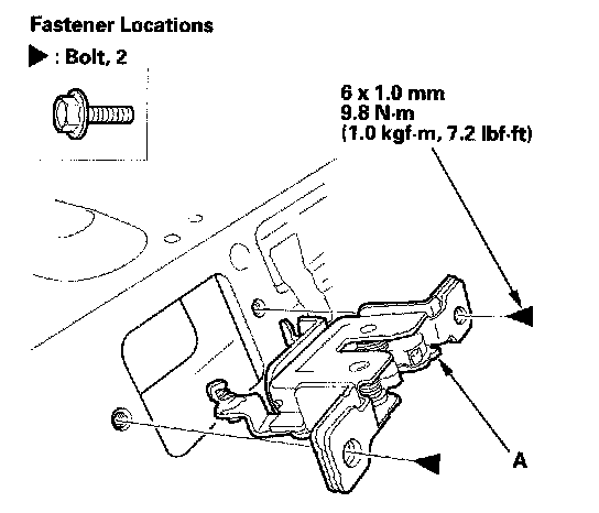 3. Remove the bolts, then remove the seat-back latch (A).