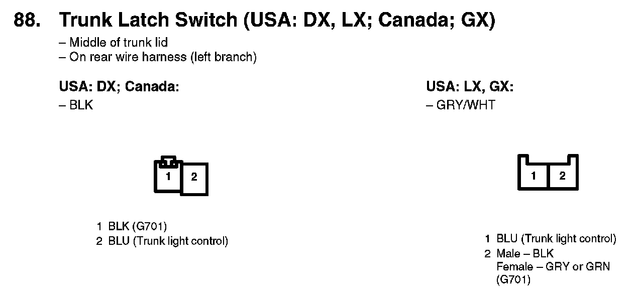 88. Trunk Latch Switch (USA: DX, LX; Canada; GX):