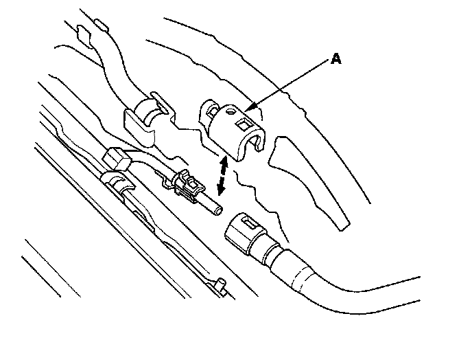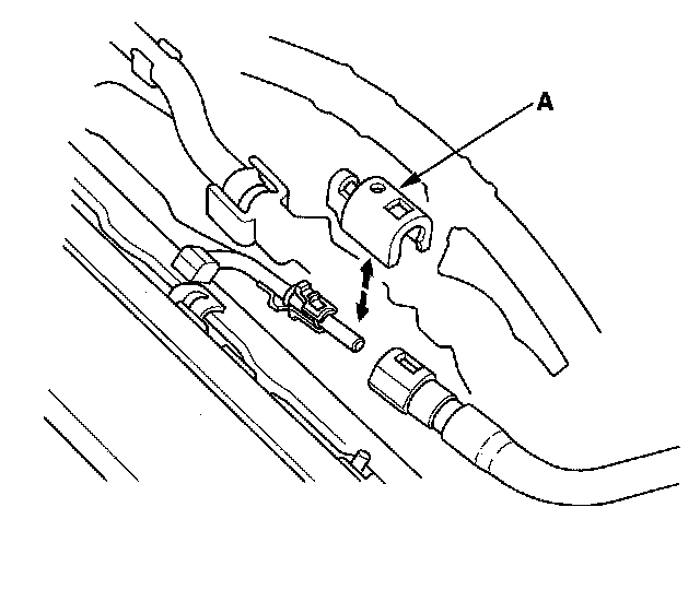 9. Remove the quick-connect fitting cover (A), then disconnect the fuel feed hose.