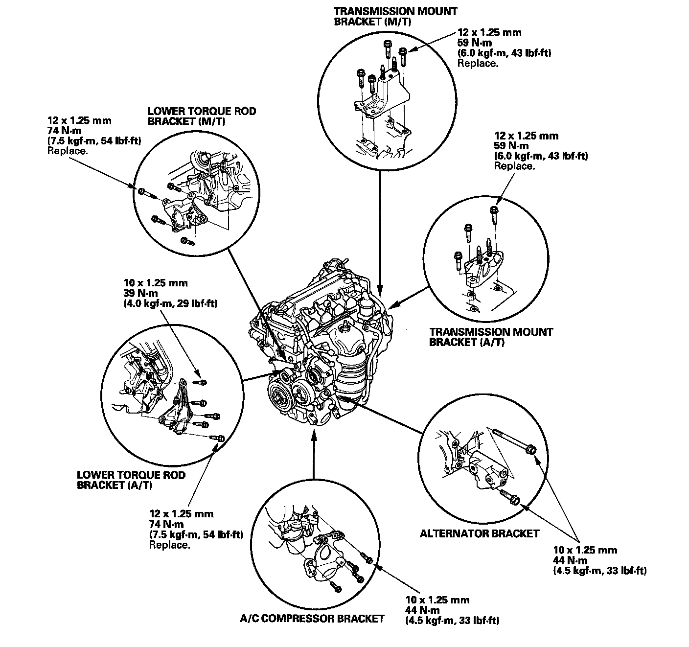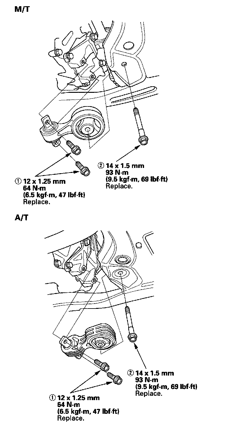 NOTE: Reinstall the mounting bolts/support nuts in the sequence given in the following steps. Failure to follow this sequence may cause excessive noise and vibration, and reduce engine mount life.