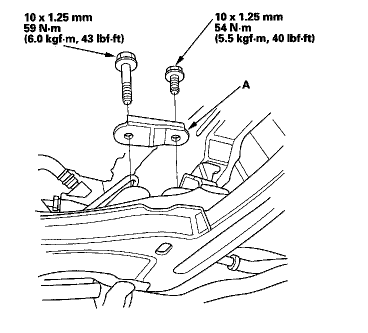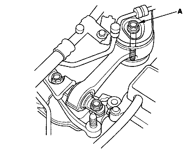 8. Tighten the new transmission mounting bolt and nuts (A).