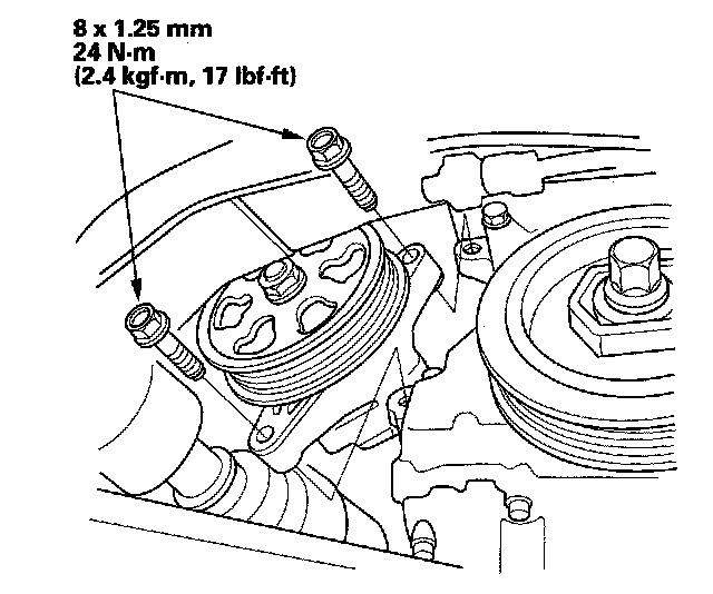 1. Install the accessory brackets and tighten their bolts to the specified torques.