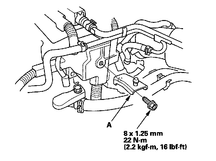 50. Install the air cleaner housing mounting bracket (A) on the cylinder head.