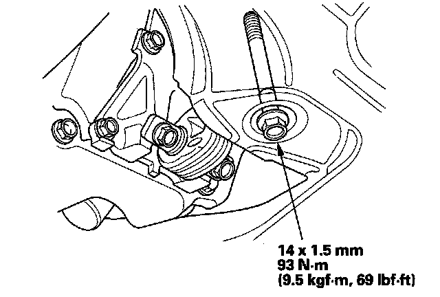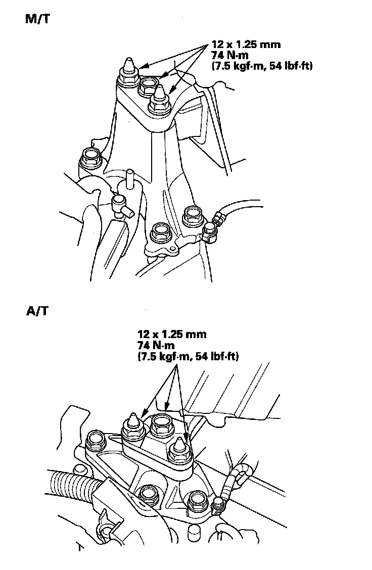 23. Tighten the transmission mounting bolt and nuts.