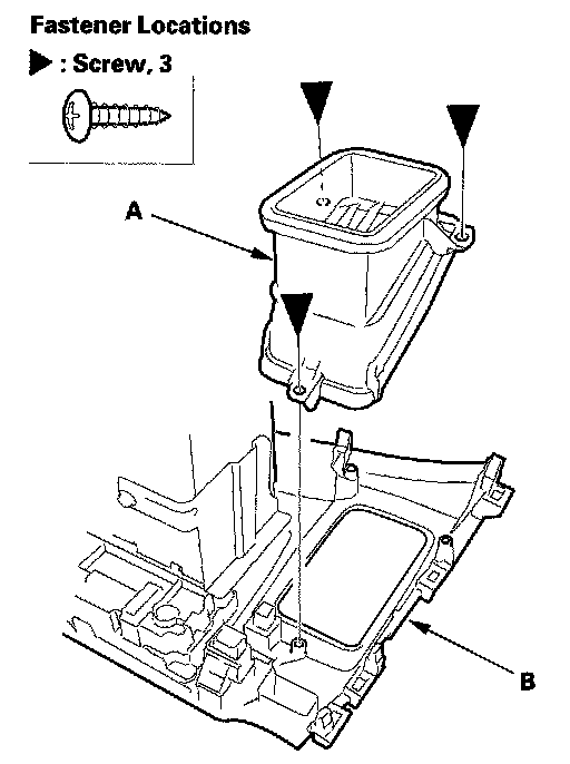 2. Remove the screws securing the driver's center vent (A), then remove the driver's center vent from the center panel (B).