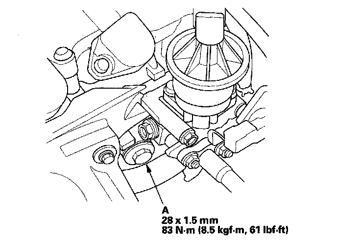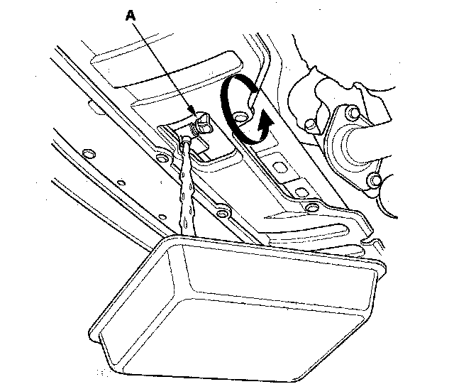 4. Remove the drain bolt (A) located at the front of the engine block.
